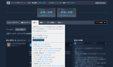 Valveは8月19日、Steamにアップデートを実施し、一部のゲームのユーザーレビューにて言語別のレビュースコアを表示できる機能を追加した。
