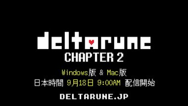 インディー開発者のToby Fox氏は9月16日、『DELTARUNE Chapter 2』を9月17日に配信すると発表した。『DELTARUNE』の公式Twitterによると、日本では9月18日午前9時に配信開始するようだ。