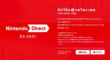 任天堂は6月2日、「Nintendo Direct | E3 2021」を予告した。放送日は6月16日午前1時。放送時間は40分だという。6月のE3期間の最終盤に、大規模な発表がおこなわれるようだ。