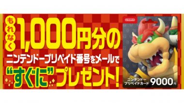 ニンテンドープリペイドカードを対象とした期間限定キャンペーンが4月26日より開催される。全国の各店舗にて一定額のプリペイドカードを購入後、一連の登録をすることで、購入分とは別に1000円分のプリペイド番号がプレゼントされるキャンペーンになっている。