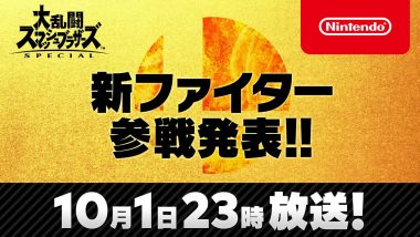 任天堂は9月30日、『大乱闘スマッシュブラザーズ SPECIAL)』有料追加コンテンツ第7弾として配信される新ファイターを、10月1日23時からの放送で発表すると明らかにした。