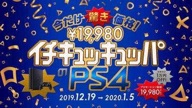 PS4/PS4 Pro本体が1万円お安く購入できる期間・数量限定キャンペーン開始。「今だけ驚き価格!イチキュッキュッパのPS4!」。またPS VRのお買い得パッケージ「PlayStation VR MEGA PACK」も数量限定で販売が開始される。