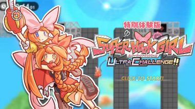 デジゲー博2019に出展された爽快感フックアクション『ニュー・スーパーフックガール ウルトラチャレンジ!! 』プレイレポート。グラップリングフックを使ってステージを踏破する横スクロールアクションゲームだ。