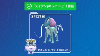 『ポケモンGO』の「Pokémon GO Fest Yokohama」にあわせて開催されている「ブランシェのリサーチチャレンジ」にて、ボーナスが全てアンロックされ、「伝説レイドバトル」にスイクンが登場することが確定した。