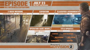 『ディビジョン2』TU5/エピソード1の配信日が7月23日に決定。DC郊外の新ミッションやエクスペディションは、イヤー1パス所有者向けの1週間先行アクセス期間を経て、7月30日に全プレイヤー解禁となる。そのほかTU5ではマッチメイク有りの低難度レイド追加、スキル全般の大幅強化が予定。