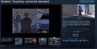 Steamにて「空のフォルダ」を販売する開発者が現れた。販売された作品の名は『Shadow: Treachery cannot be tolerated』。価格は1.99ドル(205円)。国際的な犯罪組織を運営する女性Alex Summerとなり、迫り来る対抗勢力を銃撃するというもの。ゲームジャンルはFPSだ。ゲームはエピソード形式で配信される予定になっており、今回リリースされたのは「Chapter1」。