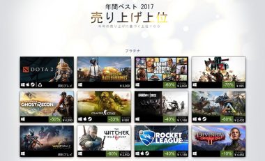 Valveは1月2日、2017年のSteamでの売り上げ上位タイトルを発表した。今年はいくつかカテゴリ別のリストも公開されているが、まずは年間での総売り上げ(ゲーム本体、ゲーム内取引、DLCなどを含む)の上位リストから見ていこう。