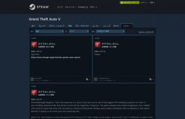 先日、パブリッシャーTake-Two Interactiveの要請によりModツール「OpenIV」の公開差し止めが行われた『Grand Theft Auto V』だが、同作のPC版へと多数の不評レビューが寄せられていることが明らかとなった。