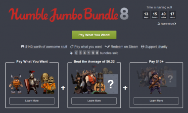 Humble Bundle社は「Humble Jumbo Bundle 8」の発売を開始した。今回のバンドルもPWYW(Pay What You Want)形式が採用されており、また購入時に支払った金額によって手に入るタイトルが変化する仕様となっている。