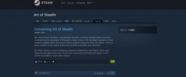 プラットフォームSteamを運営するValveは1月18日、ステルスアクションゲーム『Art of Stealth』をSteamストアから削除し、開発者であるMatan Cohen氏との契約解消を発表した。削除と契約解消の原因となったのは、開発者自身のSteamストアにおけるレビューの工作行為。