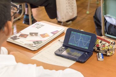 大阪府立泉尾高等学校。大阪市大正区にある、創立90年以上を数える高校で、ニンテンドー3DSを用いたプログラミング教育が行われている。授業は3年生向けの選択科目「パソコン演習」だ。教材に相当するのが、スマイルブームが開発・販売する『プチコン3号 SmileBASIC』で、授業ではゲームのプログラムを横目で見ながら、ひたすら入力(写経)するのだという。