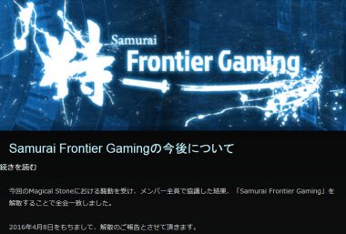 『ぷよぷよ』『Magical Stone』のトッププレイヤーが所属していたプロチーム「Samurai Frontier Gaming(SFG)」が解散を発表した。また『Magical Stone』公式サイトでは6月に開催が予定されていた世界大会の中止もアナウンスされている。