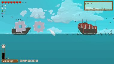 第5回Free Game Saturdayで紹介する『Pequod』は、『Death Worm』風のアクションゲーム。プレイヤーは巨大イモムシではなく白鯨。キャプテンAhabが率いる人間たちの船を沈め、最終決戦を目指す。