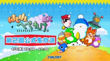 SUNSOFT(サンソフト)は4月2日、2026年発売予定の『はしれへべれけ: EX(仮題)』のアルファ版を披露する、第2回公式生放送の配信を発表した。4月3日20時から放送予定。