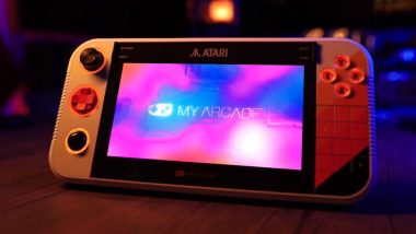 「Gamestation Go」について、映像では製品の外観が紹介されており、ディスプレイの左右にコントローラーを配置した、Nintendo Switchのようなスタイルの携帯型ゲーム機であることが分かる。