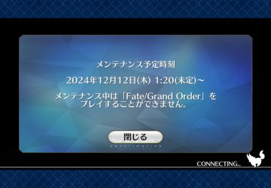 『Fate/Grand Order(FGO)』において12月12日より緊急メンテナンスが開始されている。マスターミッションに関する不具合によるもので、現時点でもメンテナンス終了時刻は未定だ。