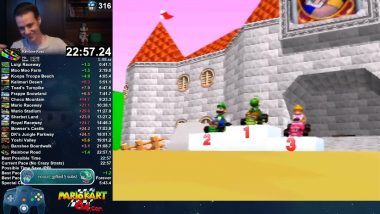 『マリオカート64』の全コーススピードランにおいて、Beck Abney氏が22分57秒240を記録し、最速記録が1年ぶりに約1秒更新された。とあるコースのタイム大幅短縮が記録更新に繋がったようだ。