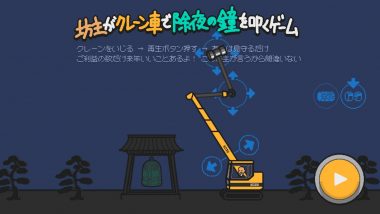 インディー開発者のニカイドウレンジ氏は12月27日、物理演算ゲーム『坊主がクレーン車で除夜の鐘を叩くゲーム』をフリーゲーム投稿サイトunityroomにて公開した。