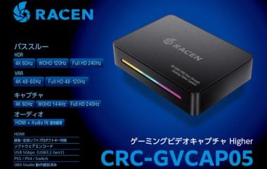 センチュリーは11月14日、「RACEN ゲーミングビデオキャプチャ Higher(CRC-GVCAP05)」を発表した。11月下旬に発売予定。