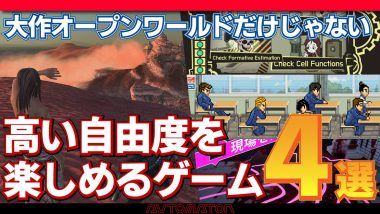 本動画では、「自由度をユニークな形で活かしたゲームにはどのようなものがあるのか」というテーマでピックアップした作品4本をご紹介します。いずれもクセが強いですが、非常に楽しめるものが揃っています。