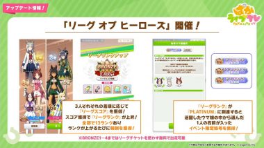 Cygamesは4月26日、情報番組「ぱかライブTV Vol.28」内にて『ウマ娘 プリティーダービー』の最新情報を公開した。新PvP「リーグ オブ ヒーローズ」のメインステージが5月12日より開催される。