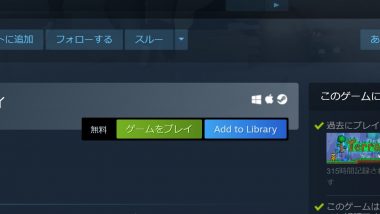 Steamにて先日より、基本プレイ無料ゲームや無料DLCページ向けに機能改善がなされたようだ。今までになかった「Add to Library」ボタンが追加され、作品を一旦インストールせずともライブラリに入手できるようになっている。