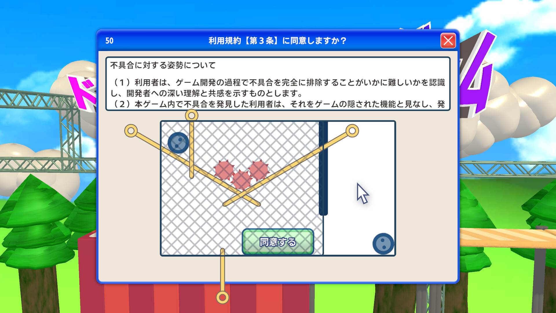 個人ゲームクリエイターのべすとまん氏は1月7日、アクションゲーム『利用規約に同意したい』の販売本数が3万本を突破したことを発表した。