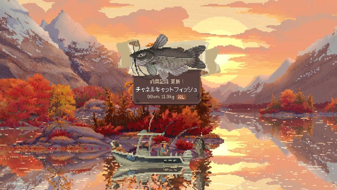 筆者は、実際の釣りは「やったことある」という程度で、特に造詣が深いわけではないし、釣りゲームのファンというわけでもなかった。ではなぜ本作を手に取ったかというと、ドット絵の美しいビジュアルに惹かれたのがまず第一。釣り場ごとに異なるのどかな大自然が精緻に描かれ、さらに時間経過による風景の移り変わりまで表現されており、つい見入ってしまう。また、ドット絵の2Dゲームであるがゆえに、釣りゲームとしてそれほど複雑なシステムではなく、気軽に始められるかもしれないと考えたのだ。