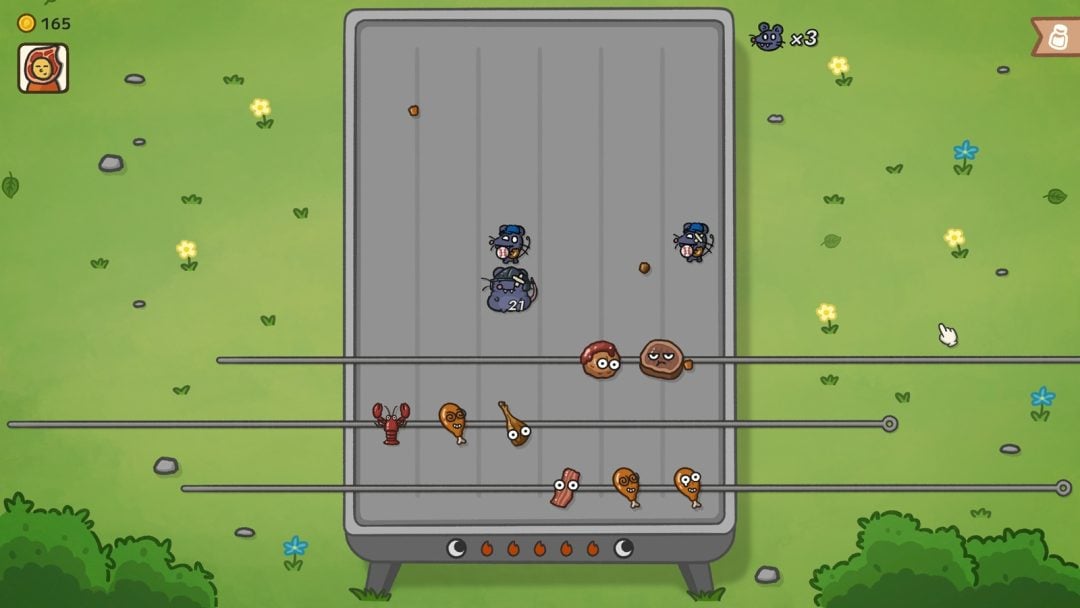 しかしいざプレイすると、しょっぱいビルドは難しかった。固めて配置しないと威力を出しづらいが、ネズミはワイドに攻めてくる。三本ある串をあっちこっちに動かしているうちにネズミが防衛網をすり抜けてしまい、グリルにダメージが入ることがしばしば。串を“ひっぱるなよ”どころか、ひっぱりまくった挙句の醜態だ。