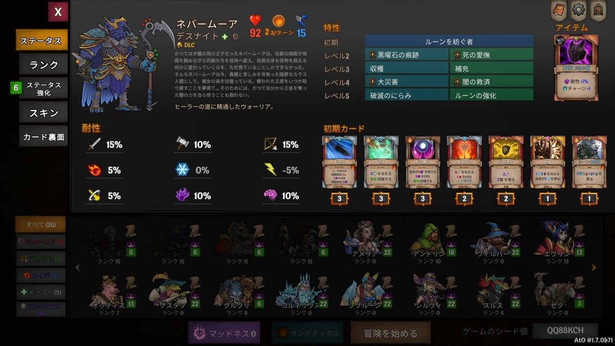 ルーンが溜まっていないときはそこまで強力ではないものの、ターンを重ねて適切にルーンを貯めれば強力な効果を叩き込めるのがネバームーアの圧倒的な強みだ。ひとつのルーンを活かすデッキだけでなく、複数のルーンを状況に応じて使い分けるデッキ構築も試せるため、プレイスタイルの幅はどのヒーローよりも広いのではないだろうか。クセが強いものの、ウォーリアーとヒーラーのマルチクラスとなっていることや、基礎ステータスも高いため、今後さまざまな可能性が切り開けるヒーローだと言えよう。