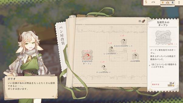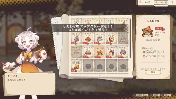 そして、だいたい毎日なにかしらのイベントやできごとが起きる。メニュー開発が進むとか、パンが売れやすい日が来るとか、町の開発が進むとか、新しいスキルを覚えるとか、ボスを倒すとか、新しいダンジョンに行けるようになるとか。