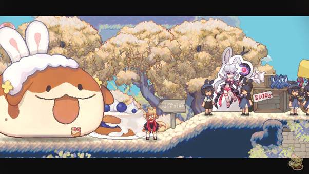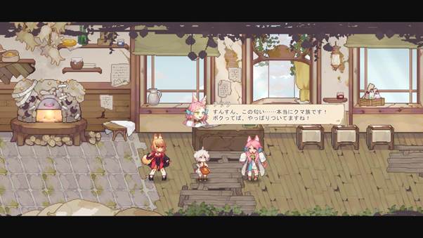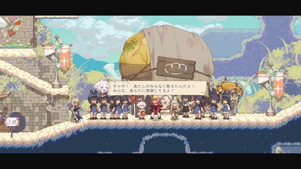 本作は、全体的に暖色系で柔らかなタッチの2Dドット風グラフィック。そして、登場人物は基本的にみんなポジティブで優しくて友好的。