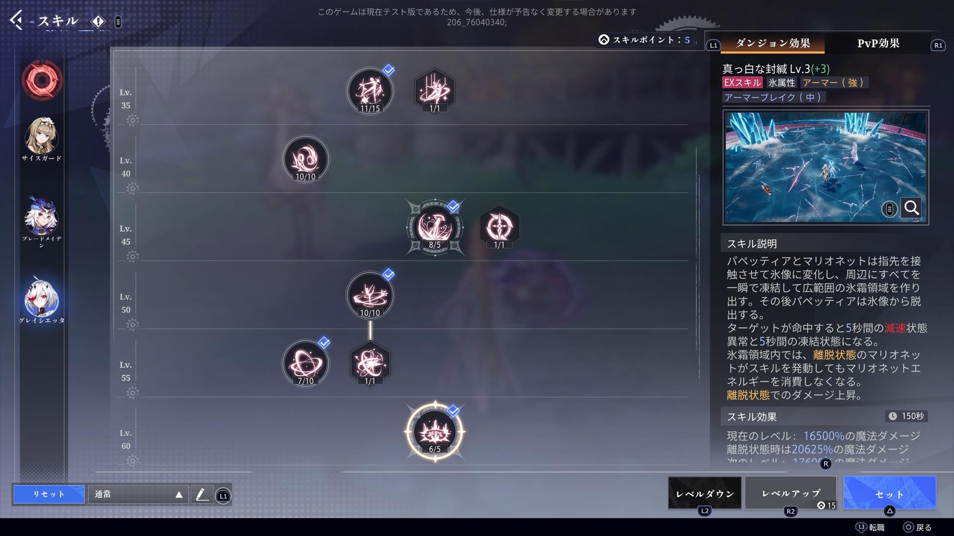 そして、各職業はレベルアップすることで複数の上級職に転職できるようになる。今回追加された「グレイシエッタ」はパペッティアの上級職だ。使用するには新たにパペッティアのキャラクターを作るか、既存のパペッティアがいればアイテムを消費して転職する必要がある。とはいえ、グレイシエッタだけの凍結能力や機動力は非常に爽快なものとなっているので、是非とも一度は体験してほしい。