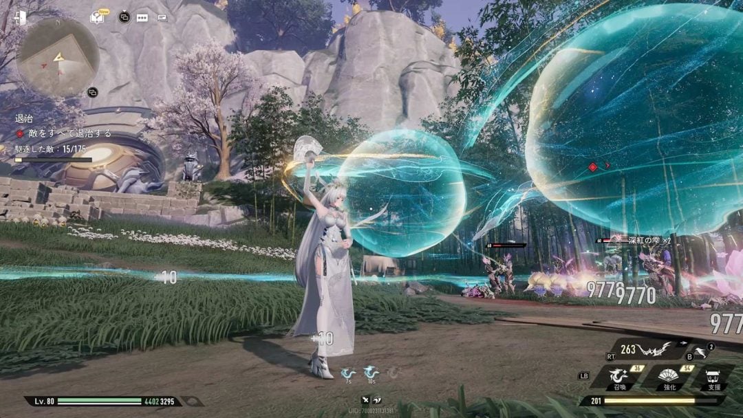 今回の先行プレイでは実装予定の新キャラ、フーシュとカシュウを操作することもできた。フーシュは水属性のキャラで、スキルでは雲龍という設置型のユニットを召喚することが可能。雲龍は効果時間のあいだ範囲内の敵を攻撃するだけでなく、味方のHPとSPを回復することができる。また必殺技では周囲の敵にダメージを与えつつ、味方にシールドを与えてスキル威力を強化するバフを与える。