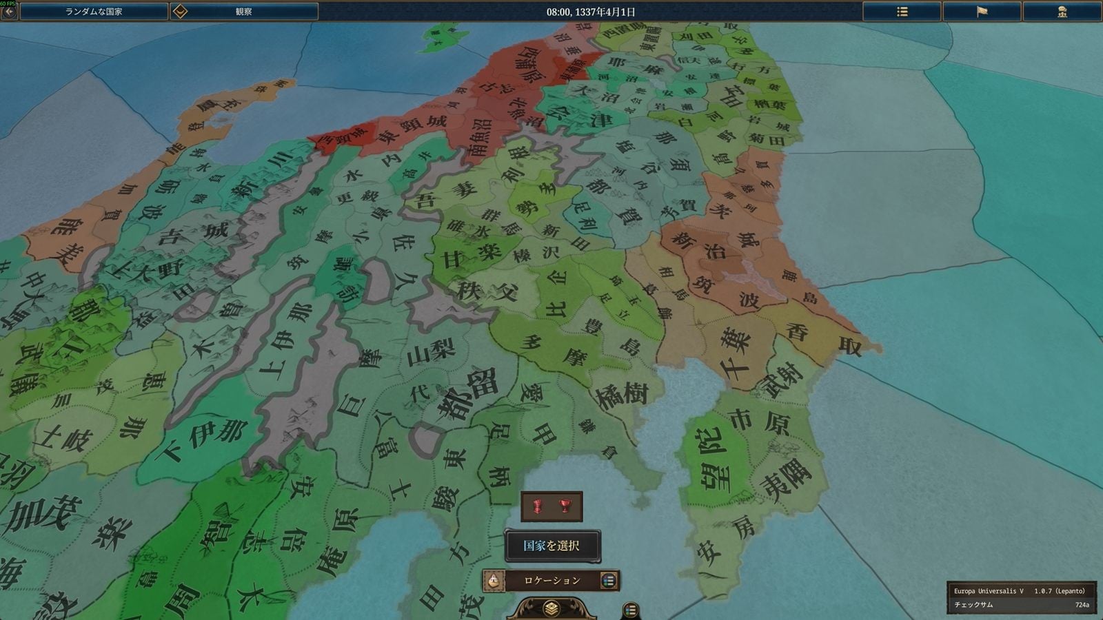 たとえば本作の日本(足利幕府)には、ゲーム開始時点で339のロケーションが存在している。現実の都道府県や律令国より細かく分割されていることになるわけだ。現代の東京近郊に当たる武蔵国には多摩・埼玉・足立・豊島・橘樹・秩父・比企・榛沢と、合計8つのロケーションが存在している。筆者としては地元のあたりならなんとかわかるが、そこを離れるともはや馴染みのない地名である。日本だけが細かいのではなく、全世界がこのディテールなのだ。