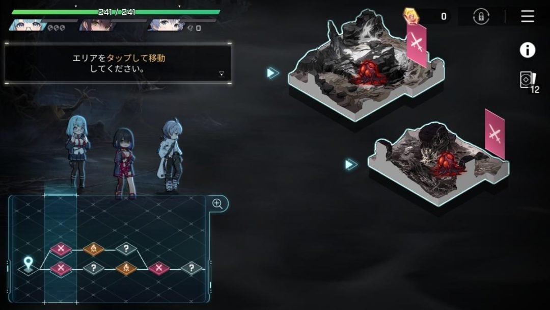 そして、ルートの最後にいるボスの撃破、もしくはチーム全体のHPが0の状態でダメージを受けた時点で探索は終了。それまでに作ったデッキと装備がセーブデータとなるのだ。ここまでがモードの大まかな流れとなる。