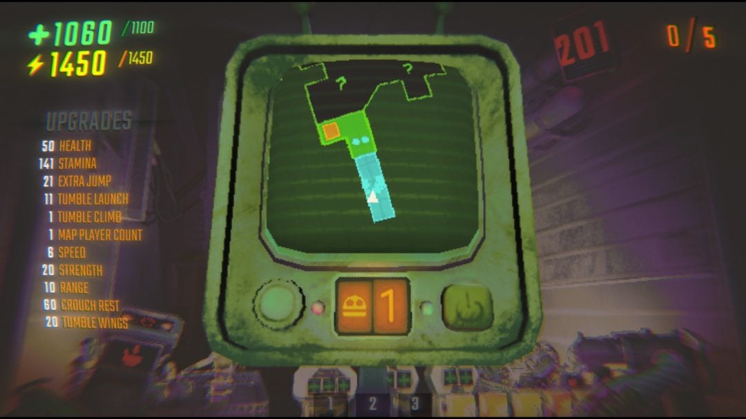 ここまで来ると敵と殴り合うような戦闘はもはやたいしたことではない。唯一恐れるべきは、一撃死となってしまう「奈落」だけである。そのため私は投げ飛ばされたり、スタン判定となったりしてしまう敵を極力避けて移動するために空中を20回連続でジャンプするようにアップグレードを取得した。敵から見れば、その姿はもはやドラゴンボールの「舞空術」を使っているかのように映るだろう。