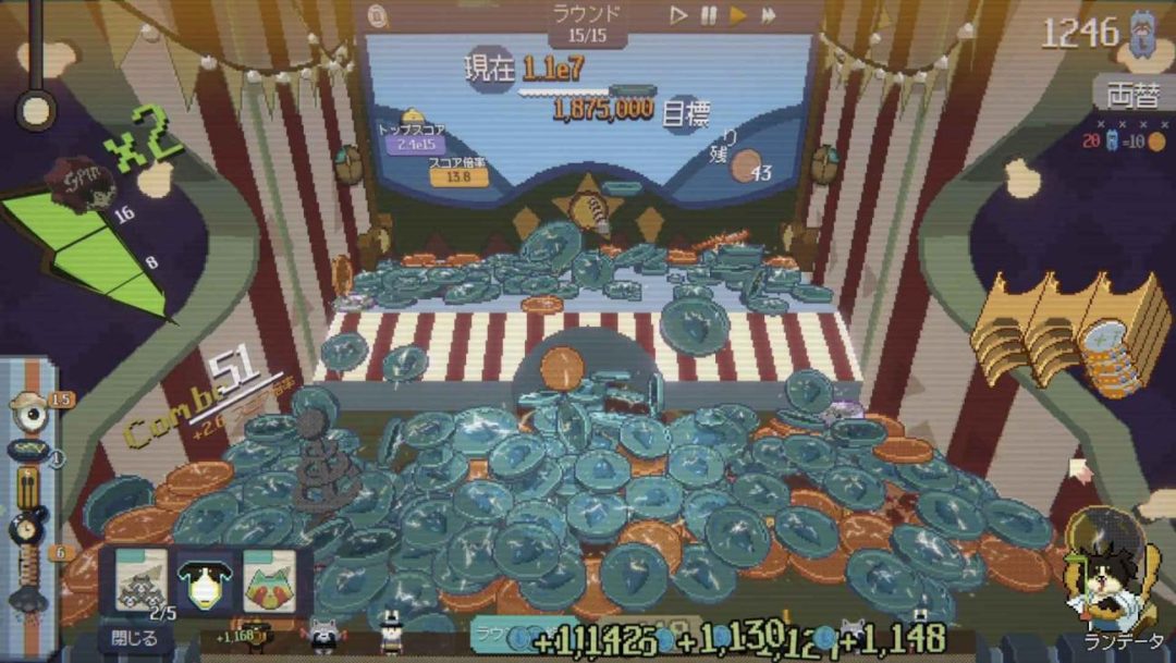 大量のコインが飛び交うさまは単純に見ていても楽しいので、ゲーム性だけでなく、映像で興味を持った方にも、ぜひプレイしてみてほしい。