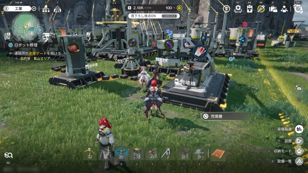 ここまで完成することができれば、ここからは今までやってきたことを繰り返し、より上位の装備やアイテム作成を目指すことになる。新しい採鉱機を作ってもっと電線を引いてもっと良い岩を掘る。あちこちの拠点にどんどん発電機を増やして発電量を増やす。新しく掘った岩からもっといい薬を作るためのボトルを作り、もっと良い部品を作ってもっといい防具を作る。