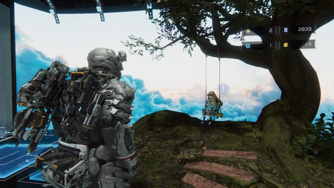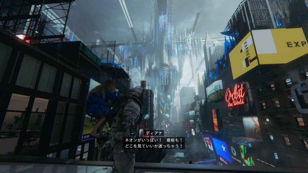 武器や装甲、3Dプリンターの暴走をイメージしたカオスな建造物といった映像上映えるマテリアルや機構の部分が非常に精巧で美しい一方、モニター上に移るコードの内容がダミーであったり、文字を潰していたりといった、ハードウェアの機能によって美麗に強化されない映像部分に対する熱量の非対称性も気になってしまう。SFとしては細部にまで拘って欲しいと筆者は思ったからだ。こういった「省略」は上述した理由からプレイ内容をテンポよく、短くするために機能している。しかし、物語のクオリティアップに寄与しているわけではないのが実情である。