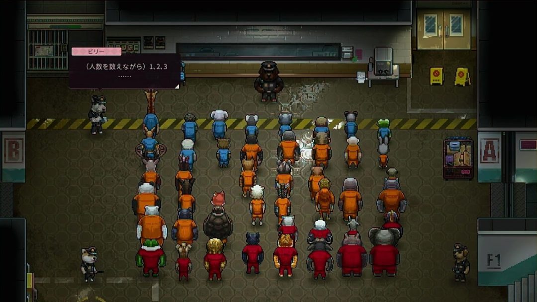本作に登場する囚人たちは計47人存在し、それぞれが固有のストーリーを持つという。最初に話しかけたバームは少しスピリチュアルな要素を持つキャラクターだが、ほかにもユニコーンを自称するウマや、声をかけただけで借金の取り立てが来たと怯えるコアラ、惨い死に様の絵を描きたいと熱心に語る画家のイグアナなど、個性の強いキャラクターたちが存在する。バームに話しかけた時には危ない人だという危機感を感じたが、ここは刑務所。誰に話しかけても基本的には危ない人たちだと思っても問題はなさそうだ。