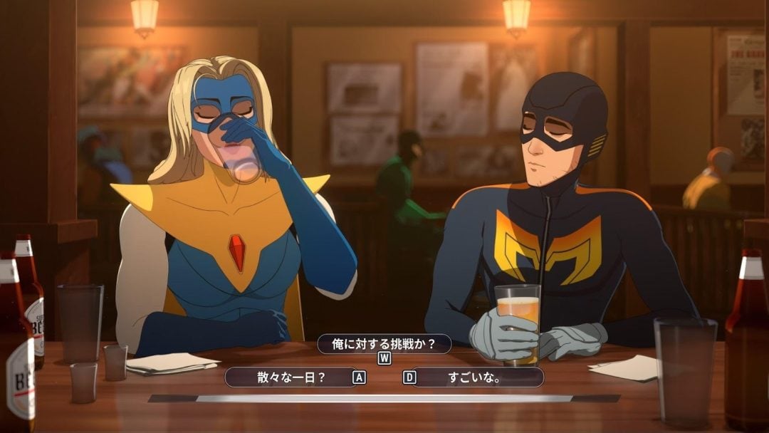実際、『Dispatch』はアニメーション・シリーズとして配信されたとしても一定の評価を得ることができただろう。ドラマ『Breaking Bad』のジェシー・ピンクマン役で知られるアーロン・ポール(ロバート)をはじめとした豪華キャストの演技も素晴らしく、軽妙でウィットに富んだライティングも相まって、プレイを重ねるごとにその世界観に夢中になってしまう(実在の楽曲を含むポップ・カルチャーの引用のセンスも素晴らしい)。だが、本作は選択型ADVであり、次々と登場する選択肢に応じて即座に台詞やストーリーの展開が変化していくのだから驚くほかない。