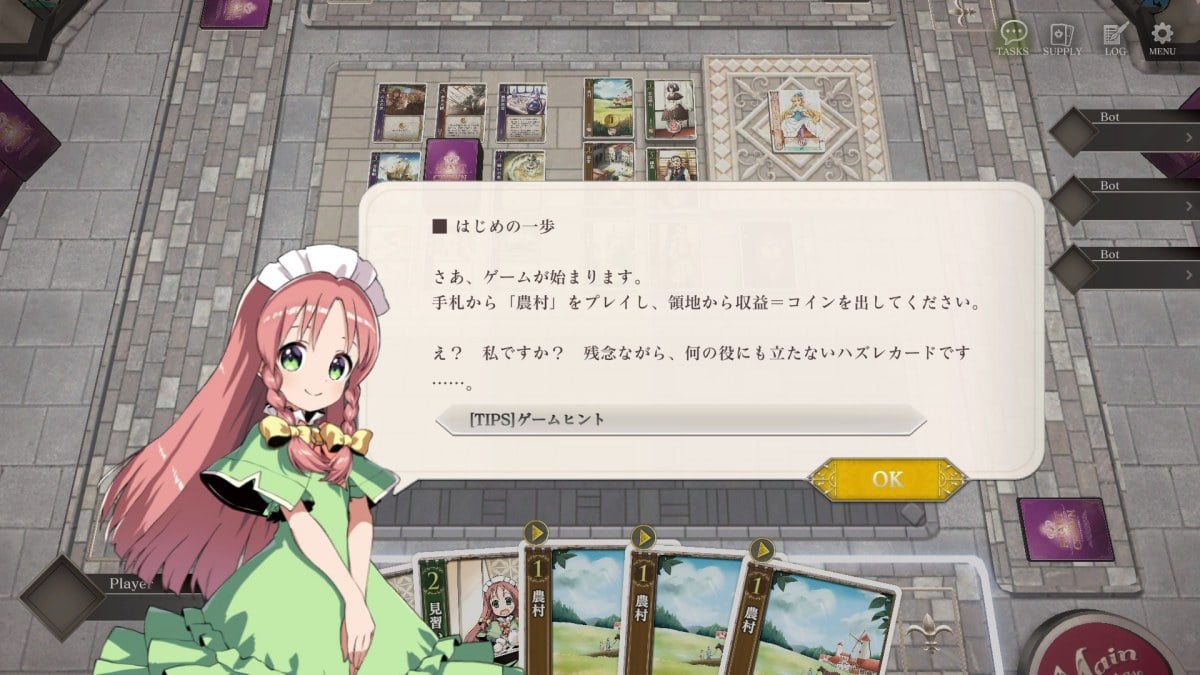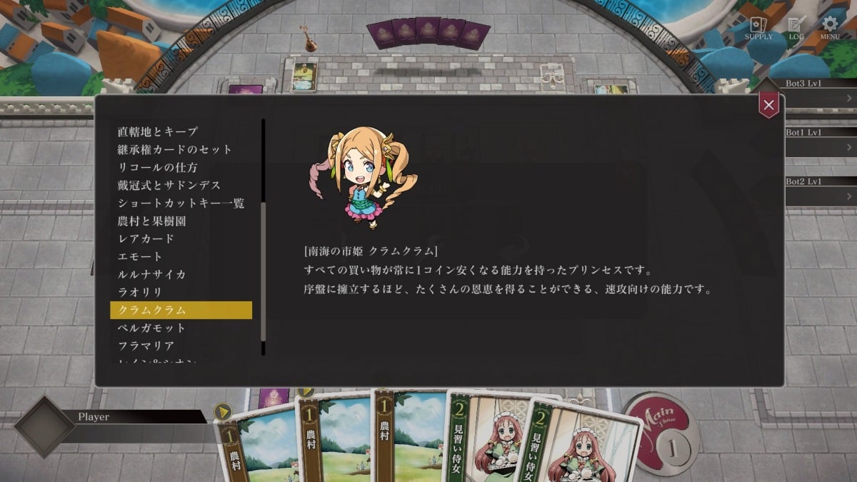 筆者も最初の数試合は、この機能に何度も助けられた。「このプリンセスってどう使ったらいいんだ?」や、「この機能ってなんだ?」といった疑問を、その場で解消できる。ルール理解に困ることがないというのは、カードゲームにおいて非常に重要なポイントだ。実際のカードゲームではルールブックを開いて調べないといけないところを、デジタル版らしく理解しやすい導線を獲得しているところも本作の良いところ。そういったところからも本作は敷居の低い作品だ。