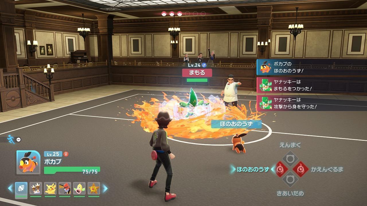 なお、技を1度使うと、同じ技を使うまでにはいわゆるクールタイムが必要であり、連打することはできない。よって、その間を穴埋めするように、「つるぎのまい」といった補助技を使ったり、トレーナーがフィールドを動くことで間合いを調整する必要がある(基本的に何もしていないとき、ポケモンはトレーナーのそばへ近寄ってくる)。技ごとに違う射程、発生速度、それに合わせたポジショニングの調整など、戦闘を楽しみ尽くすにあたって、「リアルタイム」に処理が必要な情報が格段に増えており、難度が上昇。より「リアルな」ポケモンの世界に近しい描写と、新しい面白さをはらんだ戦闘体験を構築している。
