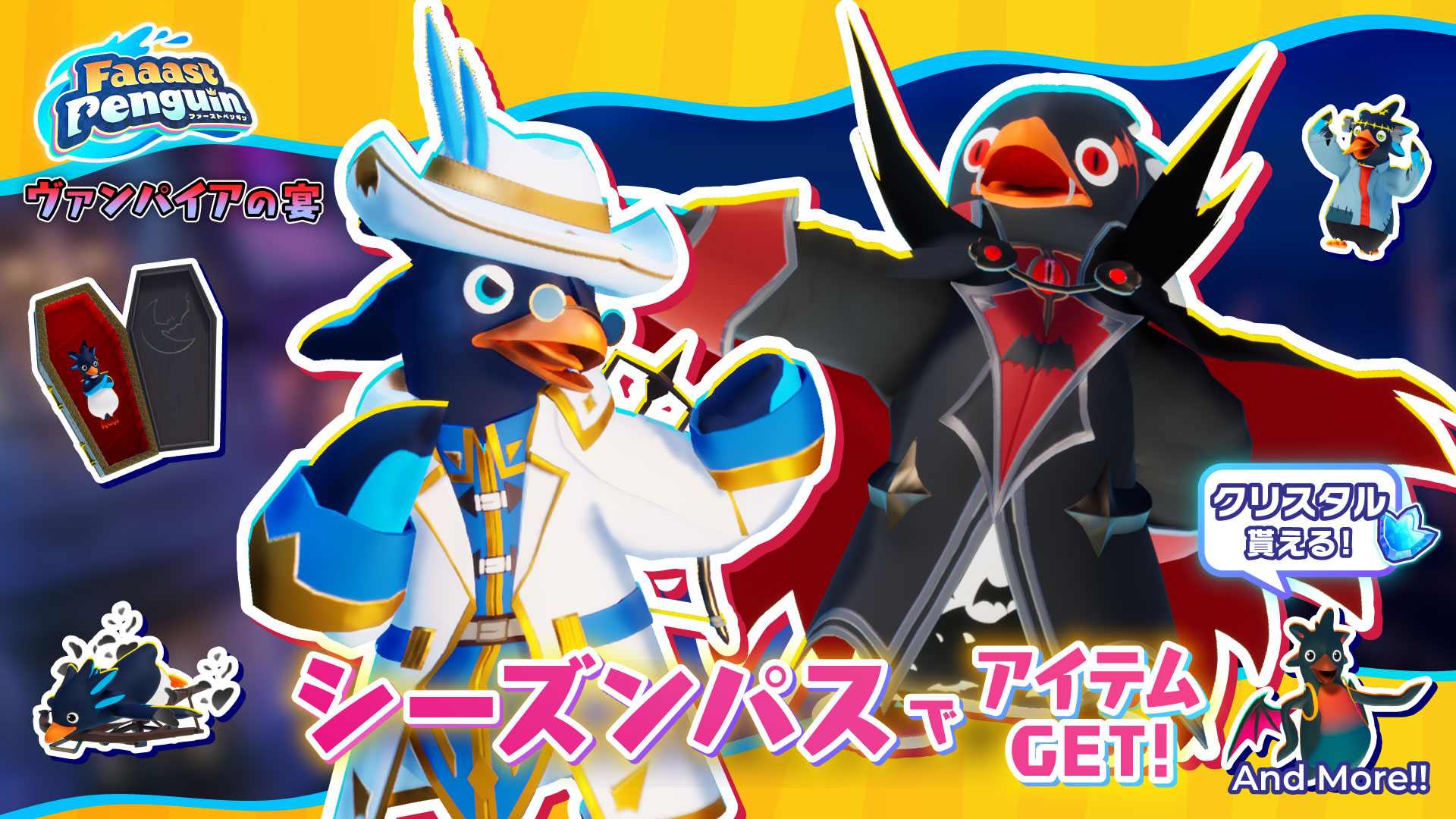 ヒストリアは10月15日、サバイバルアクションレース『Faaast Penguin(ファーストペンギン)』のシーズン7「ヴァンパイアの宴」を配信開始した。本作はPC(Steam/Epic Gamesストア)/Nintendo Switch/PS5/Xbox Series X|S向けに、クロスプラットフォーム対応で基本プレイ無料にて配信中。