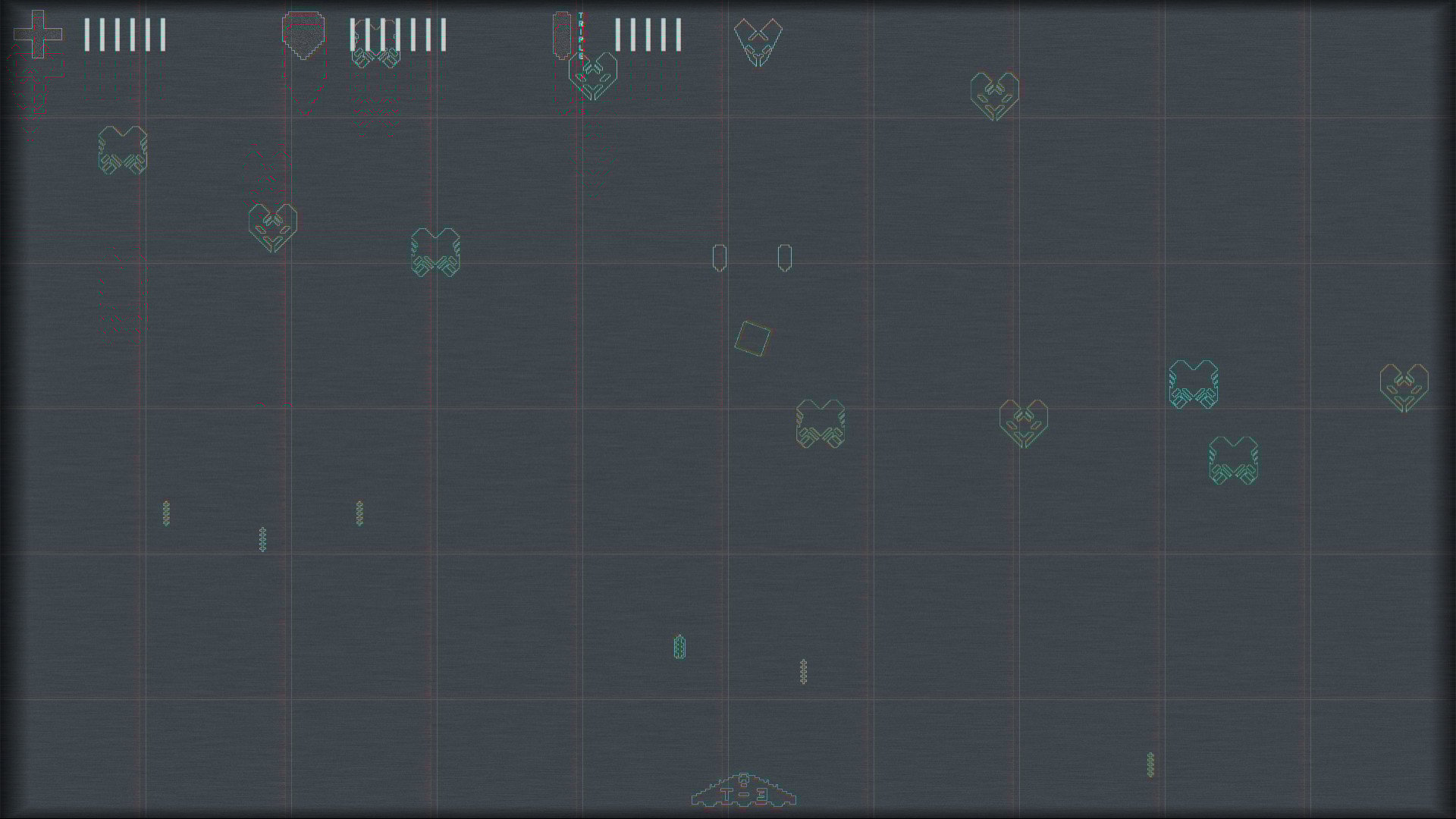 ゲームプレイでは、自機は左右のみ動かすことができる。通常ショットは連射できないため、敵の動きを予測して撃つことが重要だ。敵を倒すと稀にアイテムを落とし、入手できれば特殊ショットを撃つことが可能となる。特殊ショットには攻撃範囲が広くなるダブルとトリプルがあり、敵に当てやすいものの、弾数制限があるため使いどころを見極めよう。敵を全て倒すと次のステージへと進んでいく。