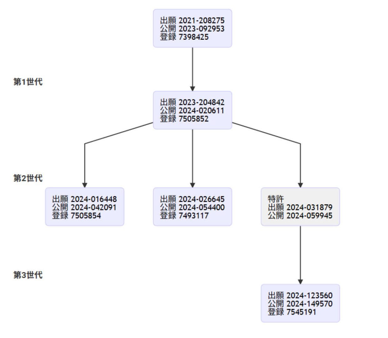 なお先述した画像のとおり、特許出願2024-031879からの分割出願によって、特許7545191が登録されており、この特許は訴訟の争点のひとつになっている(関連記事)。ただし特許7545191は独立して成立済みとみられ、仮に特許出願2024-031879が拒絶査定を受けたとしても自動的に無効になることはないようだ。とはいえ将来的に特許7545191について無効審判等の別の手続きが生じた際に影響する可能性はあり、その点でも特許出願2024-031879の今後は注目されるところだろう。