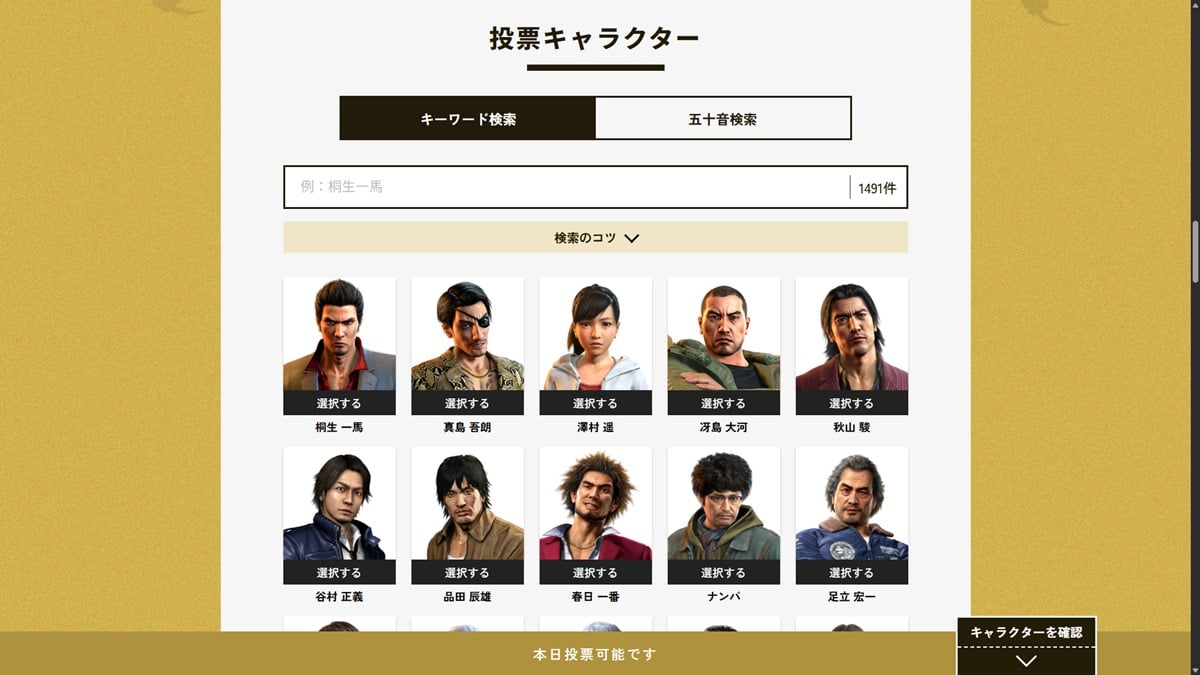 「龍が如く キャラクター総選挙」は、本日より11月21日17時まで投票受付中。