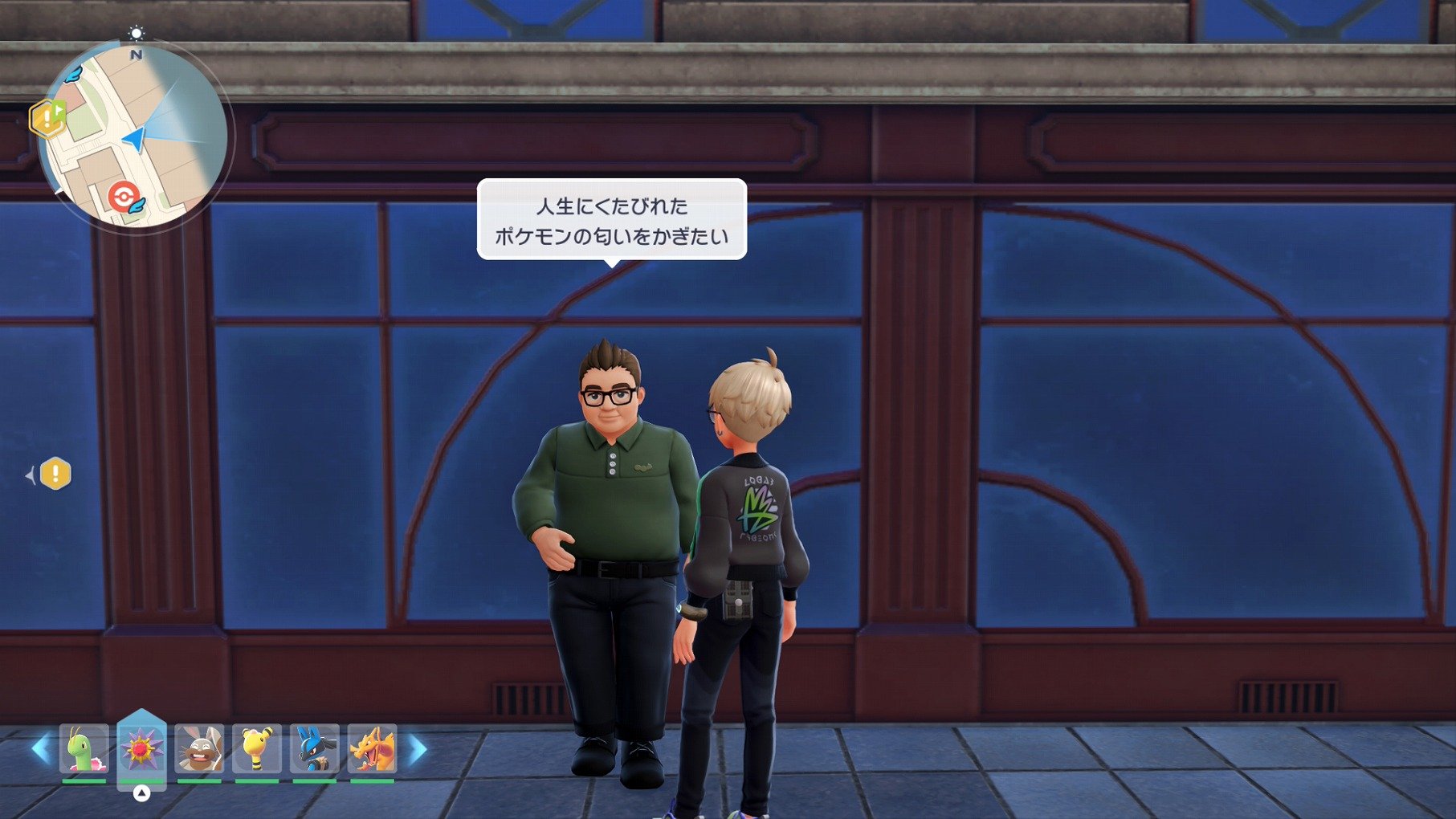 ほかにもノースサイドストリートでは「人生にくたびれた ポケモンの匂いをかぎたい」と呟くおじさんを見ることができる。誰にも迷惑はかけなそうなものの、ちょっと怖い気もする。ちなみにこのおじさんのセリフは英語版では「I’m sick and tired of this life. I just want to smell Pokémon!(この人生にうんざりだ。ポケモンの匂いだけを嗅いでいたい!)」となっており、やはりほんのり過激なニュアンスが増している印象。海外ユーザー間ではゲームのNPCのセリフ史上もっともぶっ飛んでいる、といった悪名も轟いている。