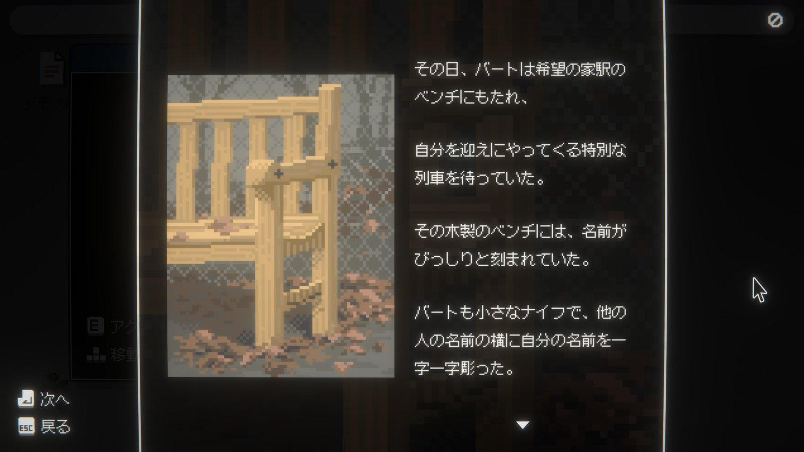 そんな本作はリリース直後から多くの好評を集めており、本稿執筆時点でSteamユーザーレビューは135件、そのうち98%が好評とする「非常に好評」ステータスを獲得している。本作はAIとの対話や探索を通じて任務をこなす中で、残された場所や物品から過去を垣間見てストーリーを楽しめる作品だ。寂寥感の漂うドット絵のグラフィックも見どころであり、複数の機能を組み合わせる謎解きのような飽きさせない工夫も凝らされている。レビューでは物語に惹き込まれたという声が多く聞かれ、「謎解きパズルゲームというよりはインタラクティブな小説を読んだかのよう」とストーリーが極めて高く評価されている。